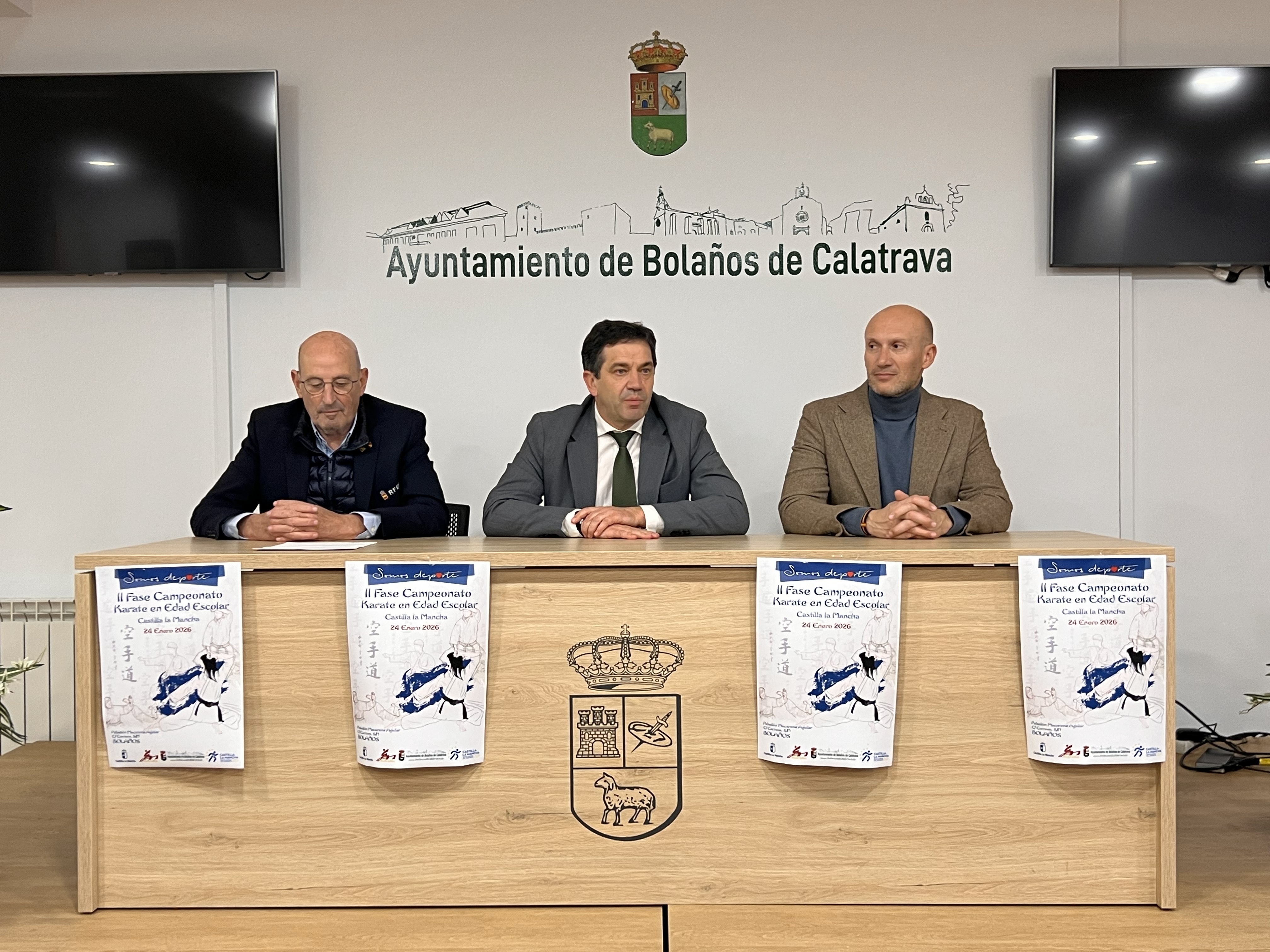 El Ayuntamiento de Bolaños de Calatrava ha presentado esta tarde, en el Salón de Plenos, la segunda fase del Campeonato de Kárate en Edad Escolar de Castilla-La Mancha, una competición de referencia dentro del calendario autonómico que se celebrará mañana en el Pabellón Municipal Macarena Aguilar y que congregará a más de 450 deportistas procedentes de toda la región.
