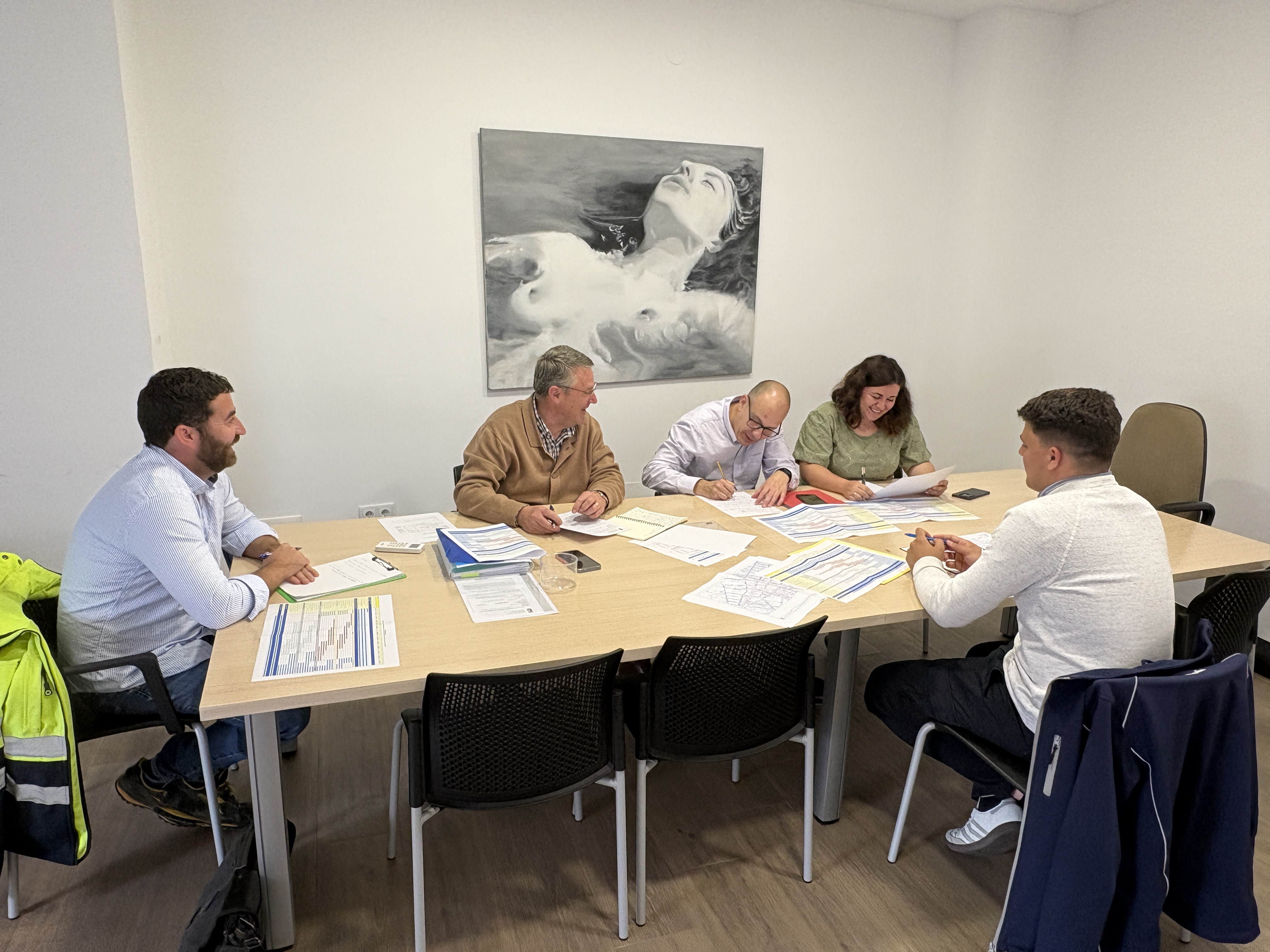 A la reunión han asistido la concejala de Urbanismo y Obras, Carmen López; el arquitecto municipal, Fernando Gallego; el responsable de la concesionaria FCC Aqualia, Jesús Fresneda; el asesor técnico municipal en materia de agua, Leoncio Laguna; y el responsable de Seguridad y Salud de la obra, Tomás Moreno.