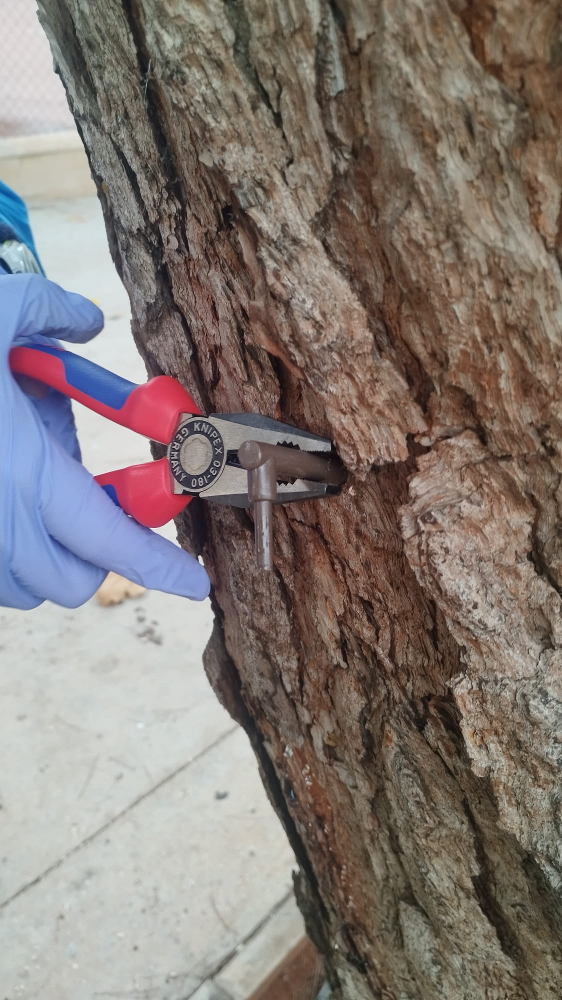 Tras numerosas reuniones y un trabajo conjunto entre los servicios municipales de jardinería, la Concejalía de Medio Ambiente y la empresa responsable del mantenimiento, se ha consensuado una nueva solución técnica: la aplicación de un tratamiento mediante endoterapia vegetal. Este sistema consiste en la inyección directa del producto en el tronco del pino, permitiendo que alcance la savia y proteja de manera integral a todo el árbol.