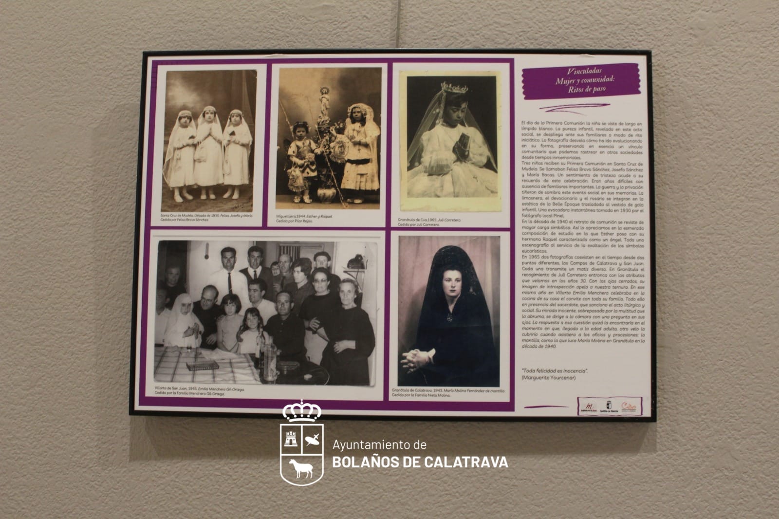 Esta mañana, se ha inaugurado en la sala de exposiciones de la Casa de la Cultura de Bolaños de Calatrava la muestra fotográfica “Vinculadas”, un recorrido visual sobre el legado histórico, social y cultural de las mujeres en nuestra comunidad a través de la fotografía.