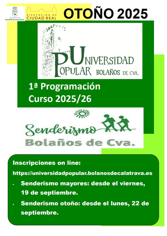 La Universidad Popular de Bolaños de Calatrava, en colaboración con el Ayuntamiento, abre el plazo de inscripción para una nueva edición de sus populares cursos de senderismo, enmarcados dentro del programa formativo y de ocio del curso 2025/2026.