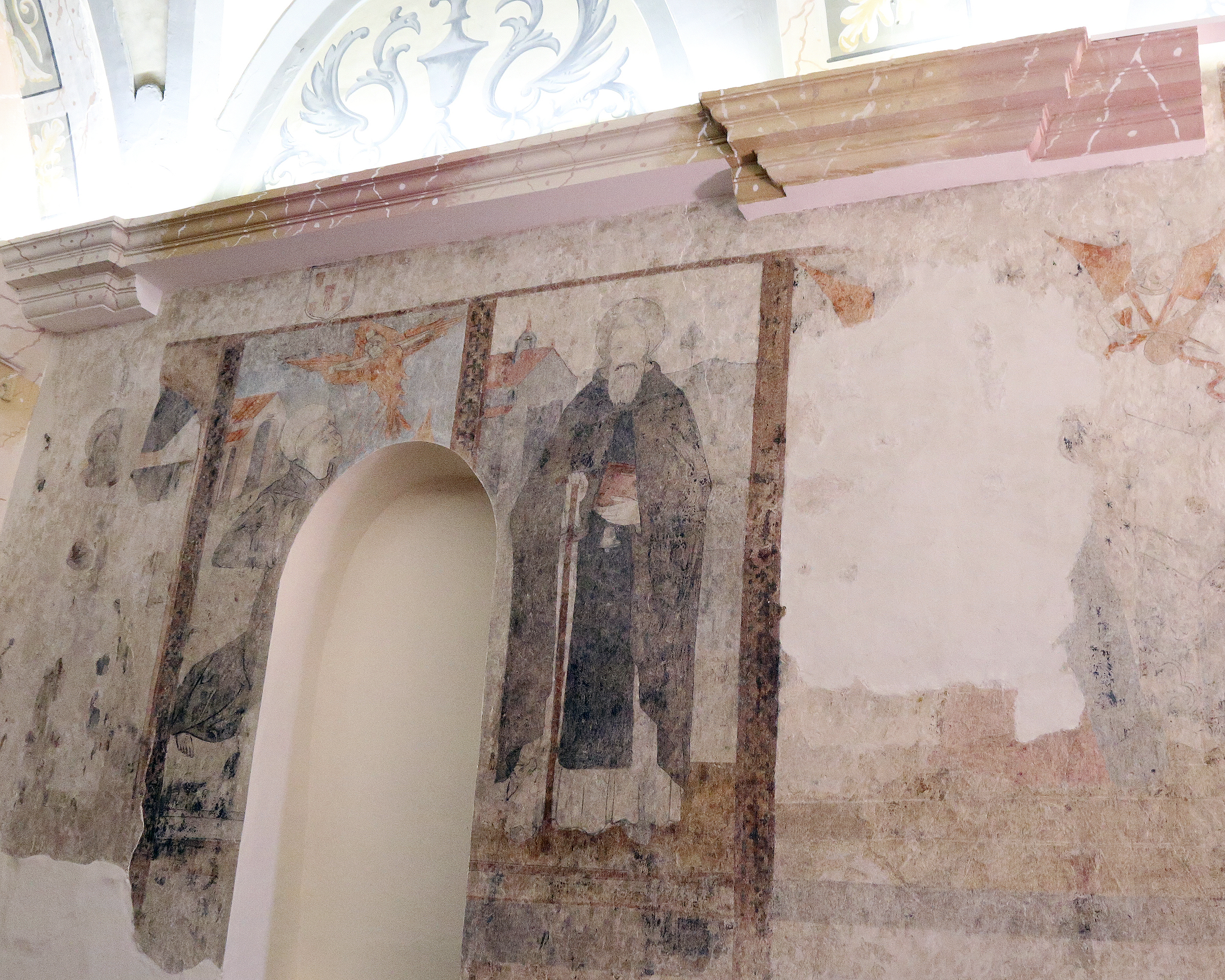 La ermita es de una sola nave de planta de cruz latina y acoge un retablo eucarístico barroco de finales del S. XVII. La decoración interior destaca por las pinturas góticas y barrocas que encontramos tanto en la bóveda como en las paredes laterales de la ermita.