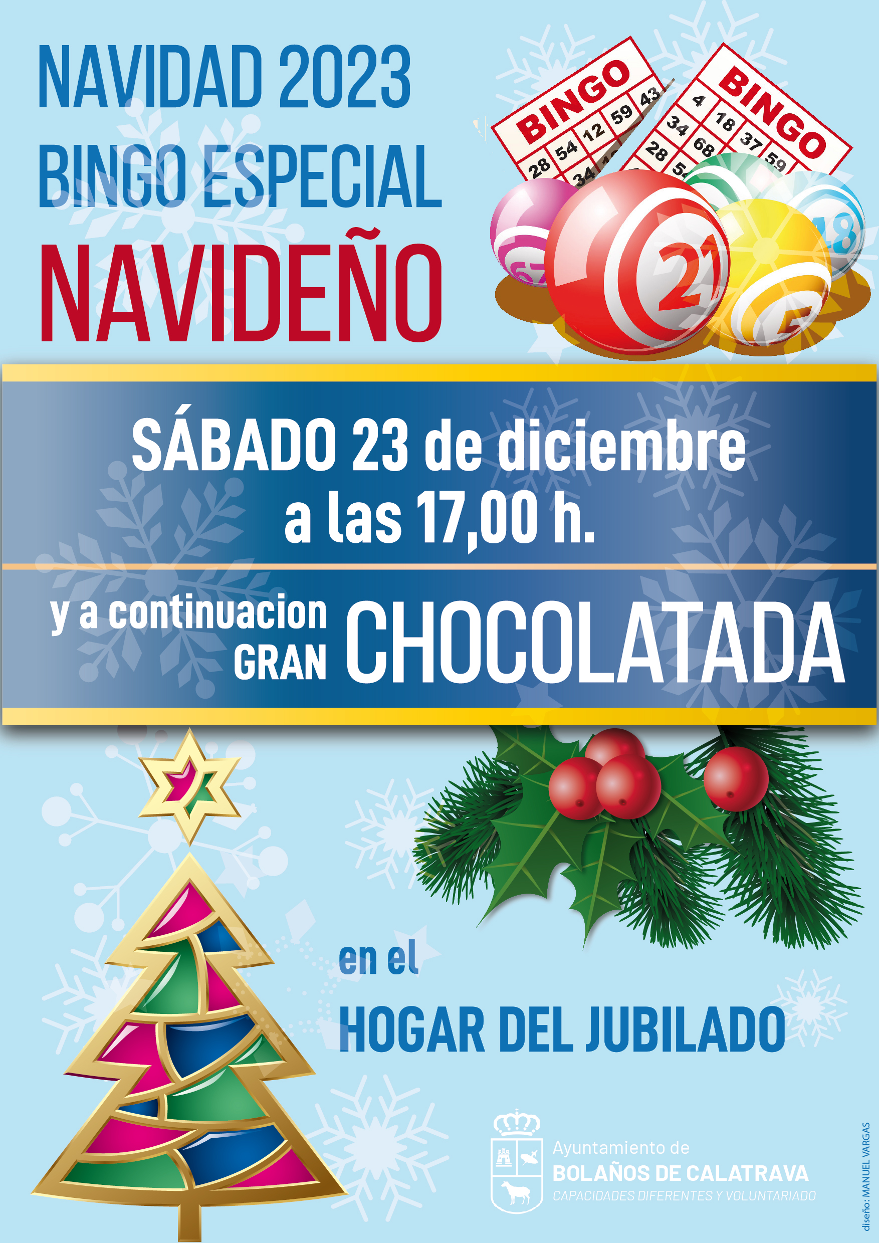 23/12/2023 - 23/12/2023 Bingo navideño y chocolatada Dónde: Hogar del Jubilado Horario: 17:00 bingo Imagen bingo