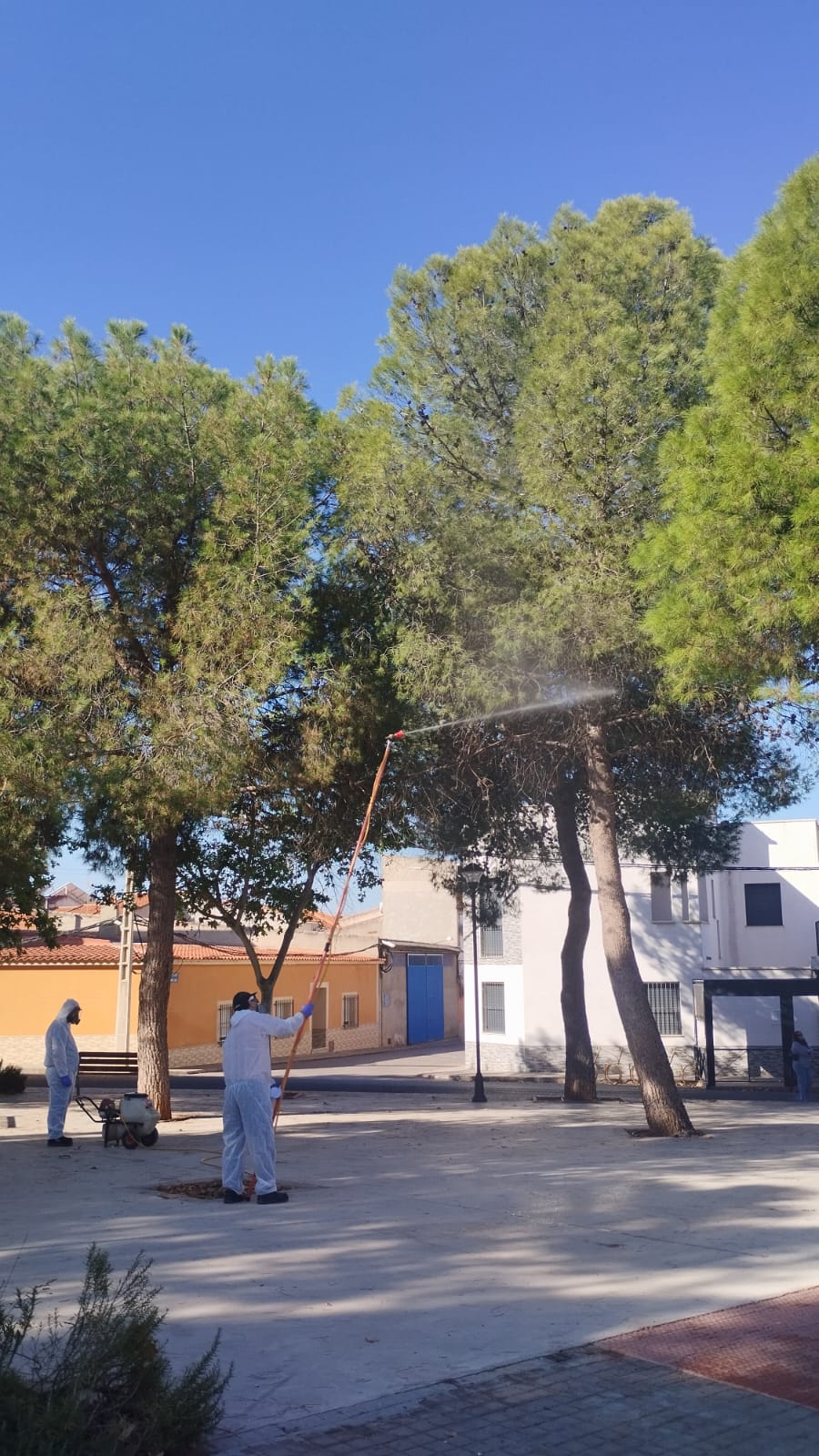 A primeros del mes de octubre y, como en años anteriores, se inició el tratamiento preventivo mediante la aplicación de Bacillus thuringiensis (BT) en los pinos de la localidad. Esta intervención se realizó de forma similar a la llevada a cabo el pasado año. No obstante, al comprobar que los resultados obtenidos no fueron los esperados, se decidió paralizar el tratamiento y requerir a la empresa concesionaria del servicio una alternativa que garantizase un control eficaz de la plaga de procesionaria en el municipio.