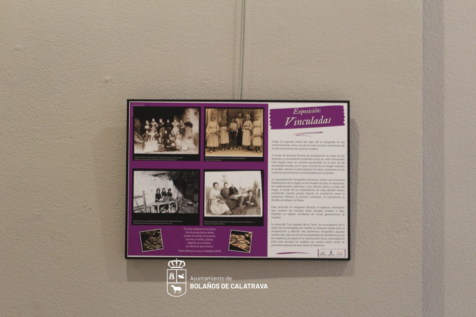 Esta mañana, se ha inaugurado en la sala de exposiciones de la Casa de la Cultura de Bolaños de Calatrava la muestra fotográfica “Vinculadas”, un recorrido visual sobre el legado histórico, social y cultural de las mujeres en nuestra comunidad a través de la fotografía.